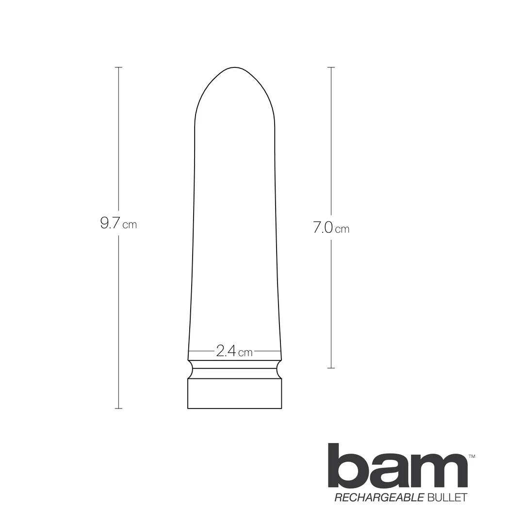 Bam rechargeable bullet packs one helluva punch. As one of the most powerful bullets available, this bad boy has 10 supercharged vibration modes. Sleek and sexy, this bullet gives intense mind blowing pleasure and the feel of the silky smooth silicone always leaves you wanting more. For those who like to get wet and wild while they play, this vibe is completely waterproof.
