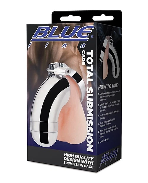 Blue Line – Total Submission Cage High Quality Metal Male Penis Chastity