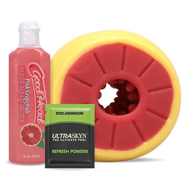 Découvrez tous les plaisirs du pamplemousse sans même avoir à faire les courses ! Ce masturbateur ouvert et adorable possède un intérieur texturé et serré en ULTRASKYN pour des sensations optimales. Il est fourni avec un flacon de 30 ml de lubrifiant GoodHead Slick Head au pamplemousse et de la poudre rafraîchissante ULTRASKYN pour une utilisation prolongée.