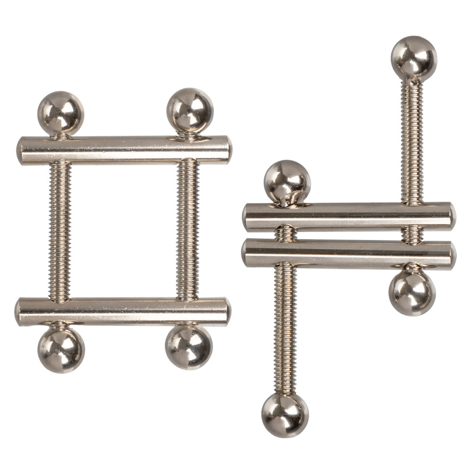 Les étaux à tétons Nipple Grips Crossbar sont conçus pour un jeu puissant sur les tétons. Tournez les deux vis et laissez les deux barres transversales se resserrer de plus en plus sur vos mamelons pour une sensation incroyablement agréable. 2 pinces multi-usages sont incluses dans l’achat. Jouez avec les deux, ou utilisez-en une seule à la fois. Ces pinces à mamelons vous permettent de jouer comme vous le souhaitez. De plus, vous pouvez les utiliser seule ou avec un partenaire. La barre transversale entièrement réglable vous permet de contrôler la pression. Vissez les barres transversales pour un ajustement serré, ou écartez-les pour un ajustement plus souple. Ces étaux à mamelons offrent une expérience de plaisir totalement personnalisable, et leur conception entièrement réglable permet de les utiliser sur tous les types de corps. Ces pinces sont fabriquées en métal résistant, non ternissant et sans nickel, ce qui les rend inoffensives pour le corps et durables. Pour garder vos produits propres, il suffit de les laver avec de l’eau et du savon tiède ou avec notre nettoyant pour jouets CalExotics, et de les laisser sécher.