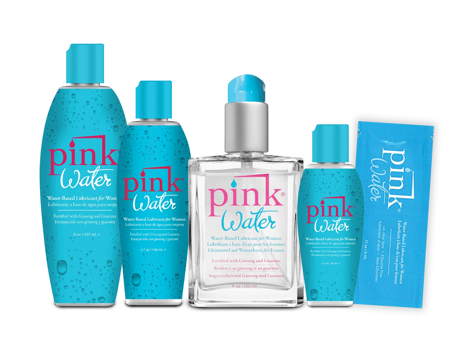 Come alive and feel new pleasures. Pink Water Intimate Lubricant is a premier purified water-base lubricant that provides the long-lasting glide of silicone, but also offers a wetter, lighter- weight blended texture that is both slippery smooth and easy to rinse away. Pink Water feels surprisingly like your own natural moisture, and is the ideal enhancement since it won’t dry out and is irritation-free so the pleasure is all yours. Contains added extracts of Aloe Vera and Oat to repair and minimize irritation, and Ginseng and Guarana to heighten sensation and increase blood flow.