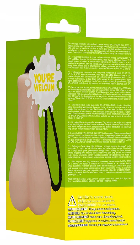 Ce savon est non seulement amusant, mais il vous permettra aussi de vous rafraîchir et de vous laver les testicules tout en apportant une touche ludique à votre salle de bain. Grâce à sa boucle pratique, il sera toujours à portée de main ! Vous pourrez ainsi laver vos bijoux de famille avec toute l’attention et la douceur qu’ils méritent. Ce savon en forme de testicule mesure 11 cm de haut et possède une base « nucléaire » robuste de 7,5 cm de diamètre.